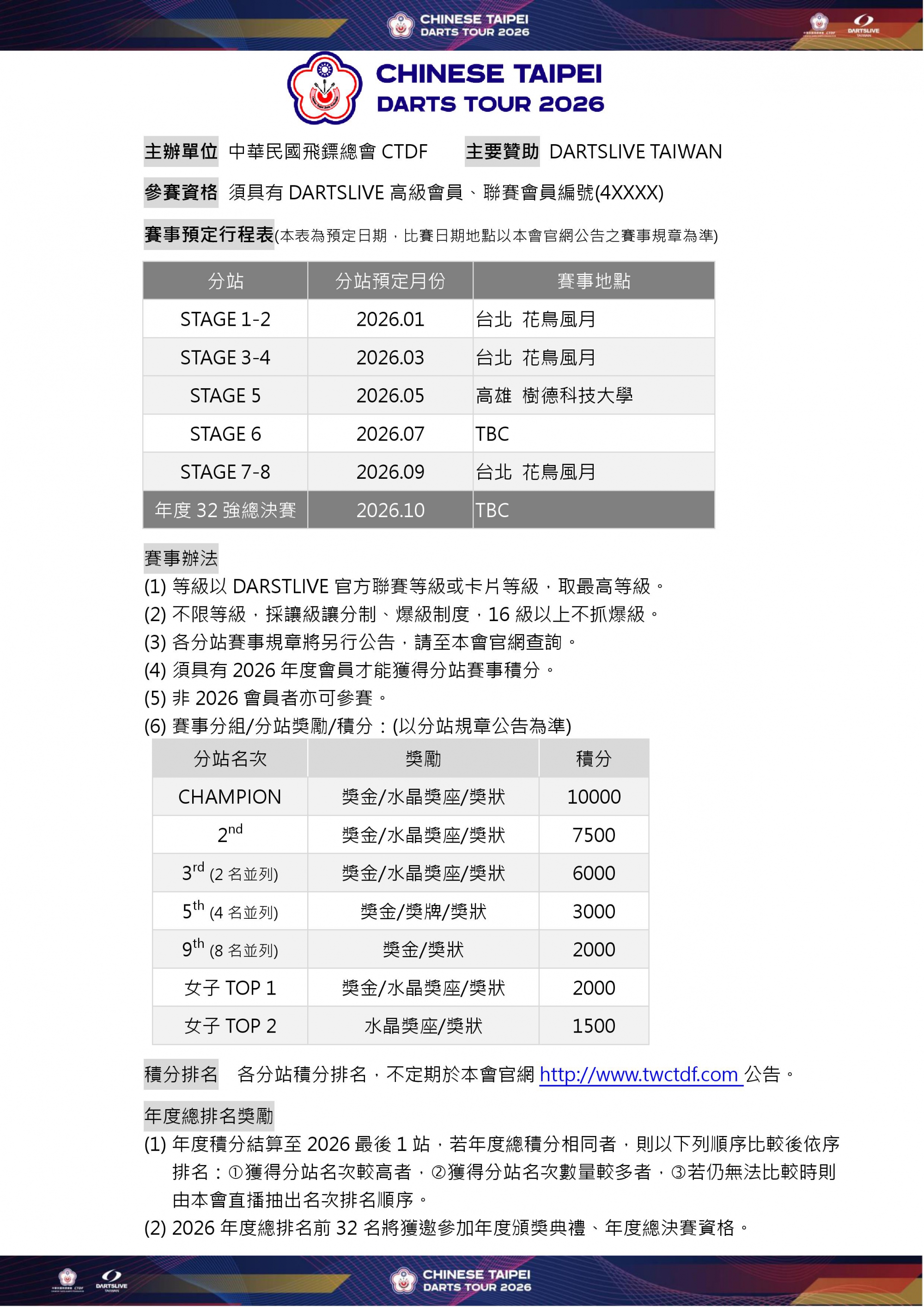 CHINESE TAIPEI DARTS TOUR 2026 賽事概要