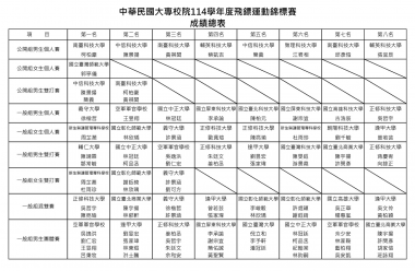 | [學生賽事] 中華民國大專校院114學年度飛鏢運動錦標賽 分組名單賽程及報到時間公告 | 2025-11-03 | |