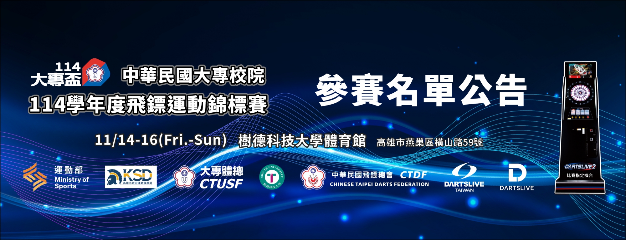 中華民國大專校院114學年度飛鏢運動錦標賽各組名單公告->https://reurl.cc/rKdnNx