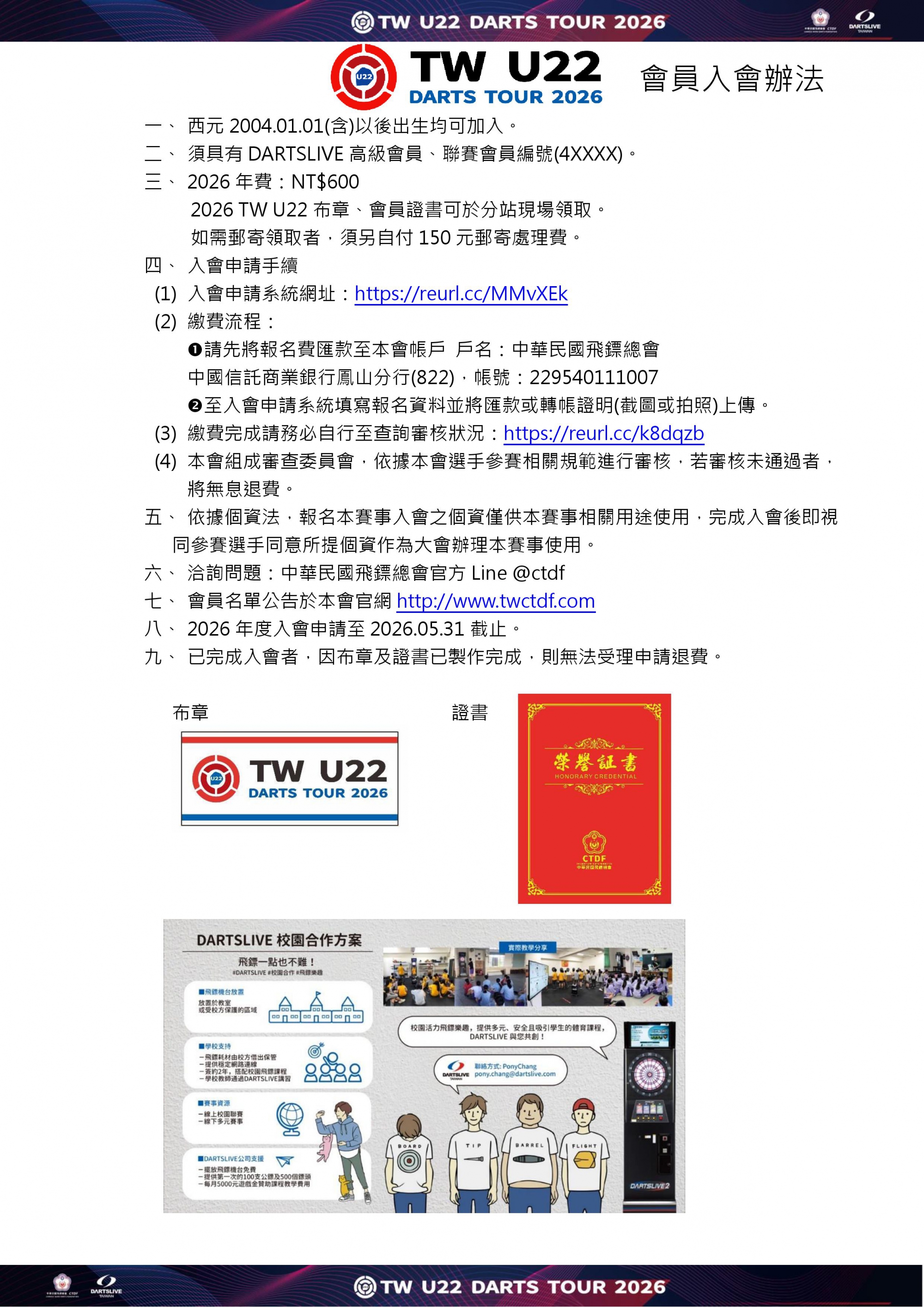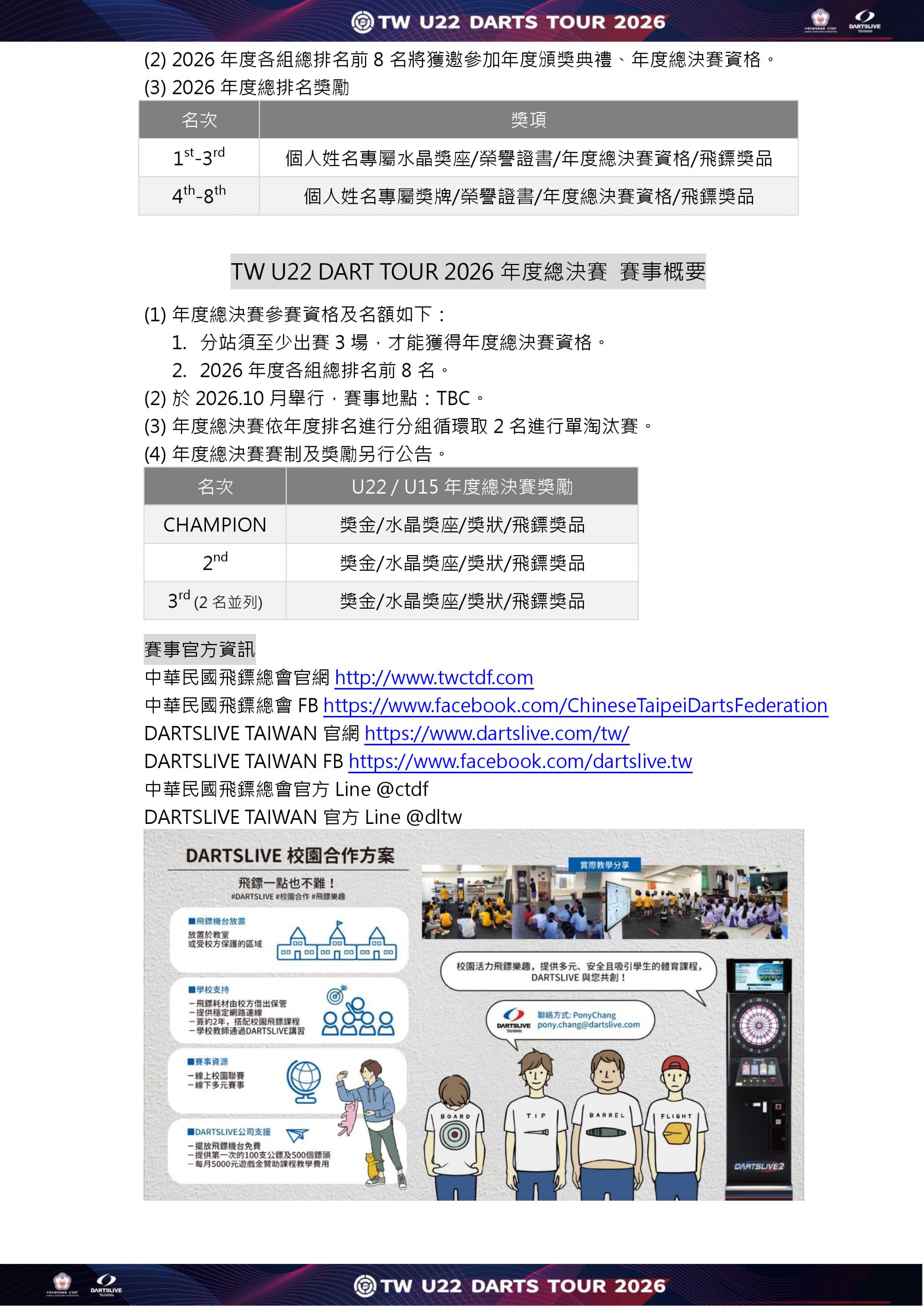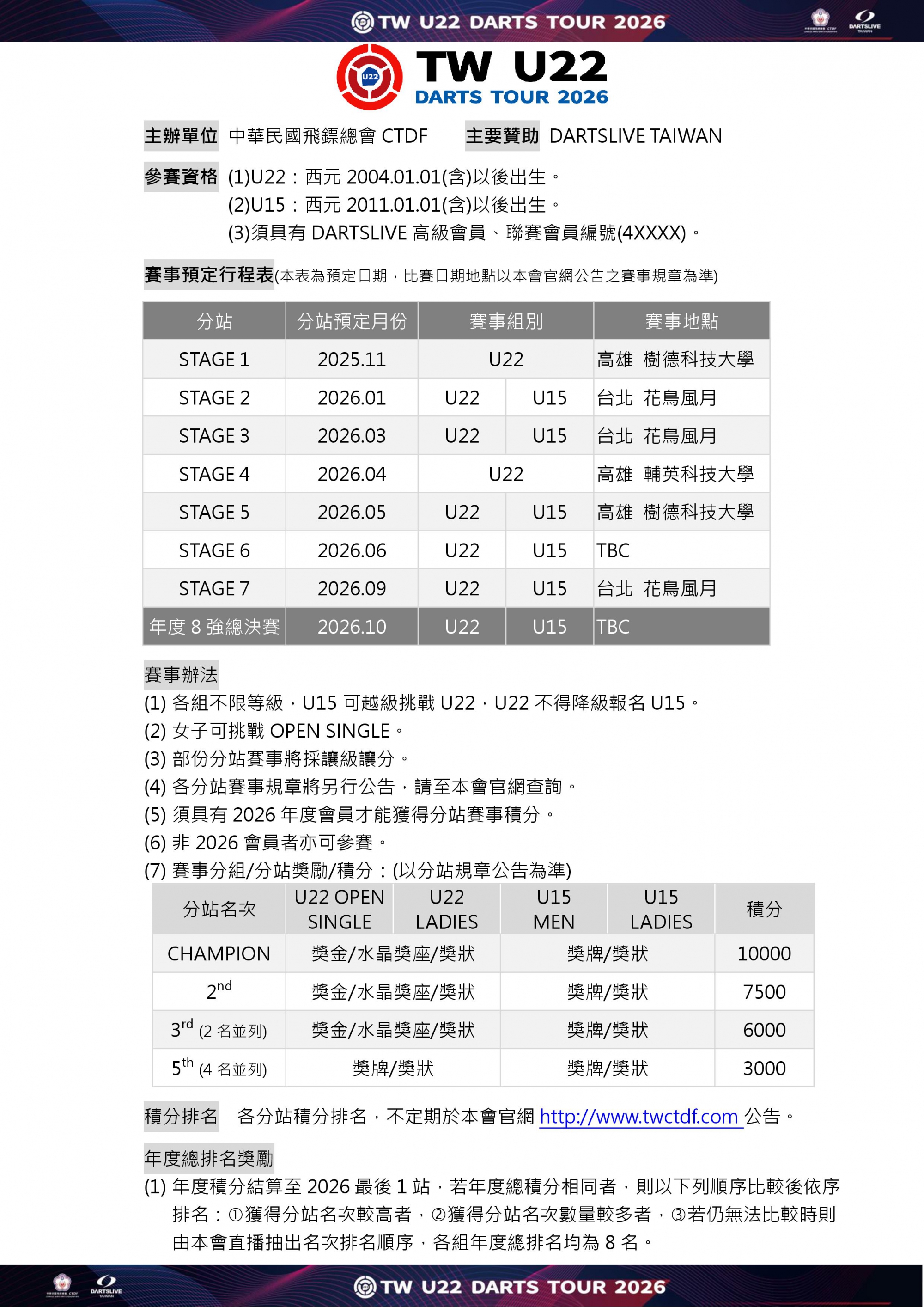 TW U22 DARTS TOUR 2026 賽事概要公告