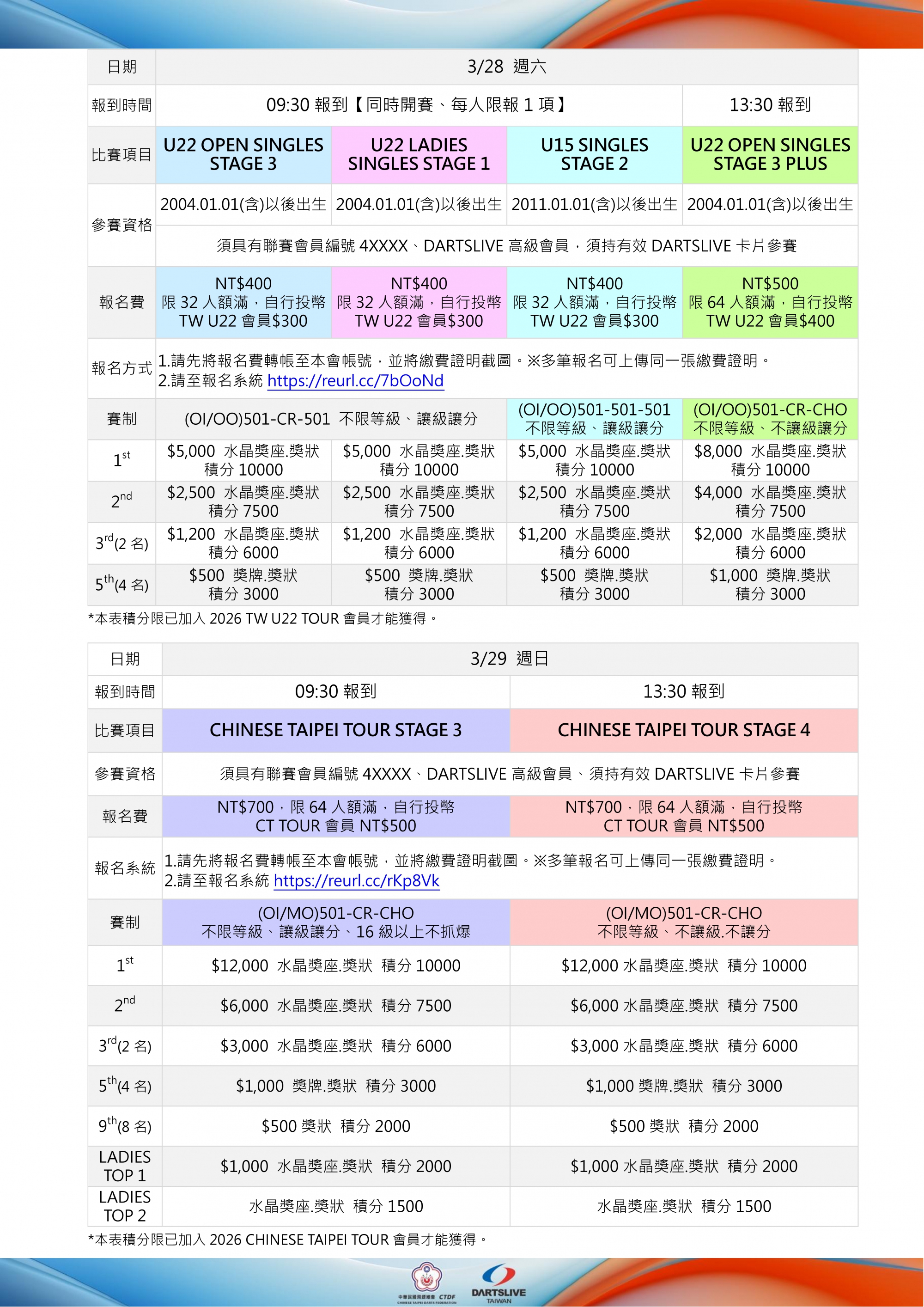3/28(星期六):TW U22、TW U15、TW U22 LADIES
