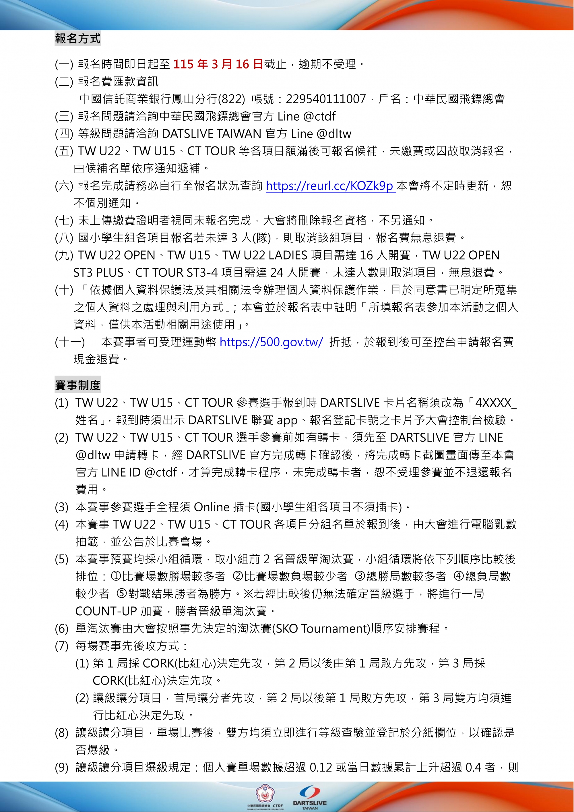(三)報名問題請洽詢中華民國飛鏢總會官方Line @ctdf