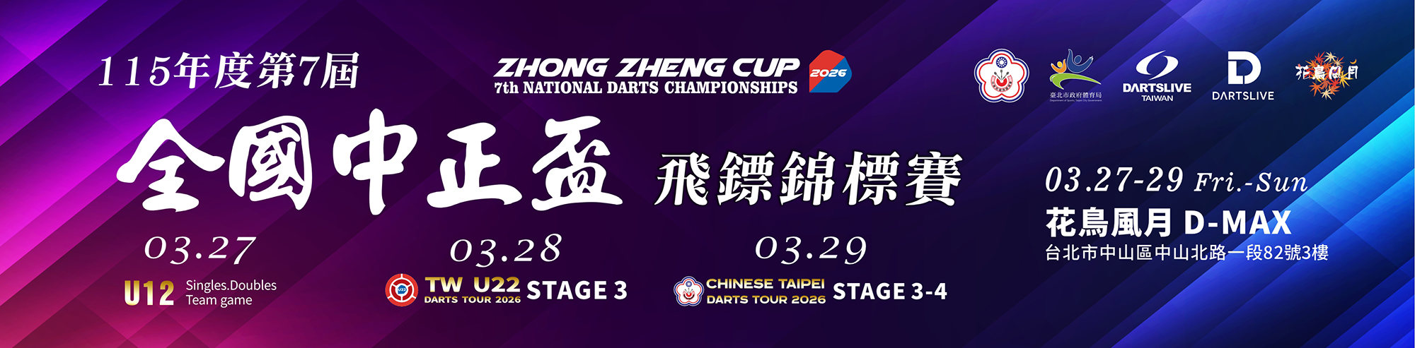 最新資訊| [國內賽事] 115年度第7屆全國中正盃飛鏢錦標賽3/27-29 花鳥風月D-MAX 開始報名嘍 | 2026-02-21 | |