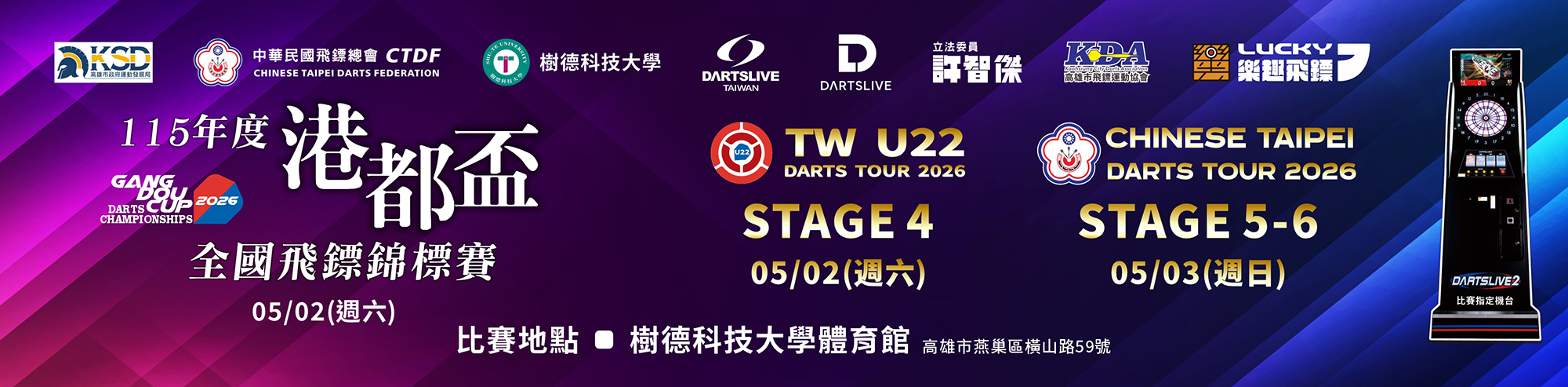 | [學生賽事] 115年度港都盃全國飛鏢錦標賽 樹德科技大學體育館 免報名費 | 2026-03-31 | |